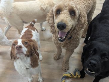Our top priority is the safety and well-being of our pack! That’s why every dog who joins us for daycare goes through a thorough meet-and-greet first. We take the time to understand each dog as an individual, so we can carefully pair them based on factors like size, personality, and play style. We are an open play facility, meaning we’re right there with the pups all day, ensuring a fun and safe environment for everyone.